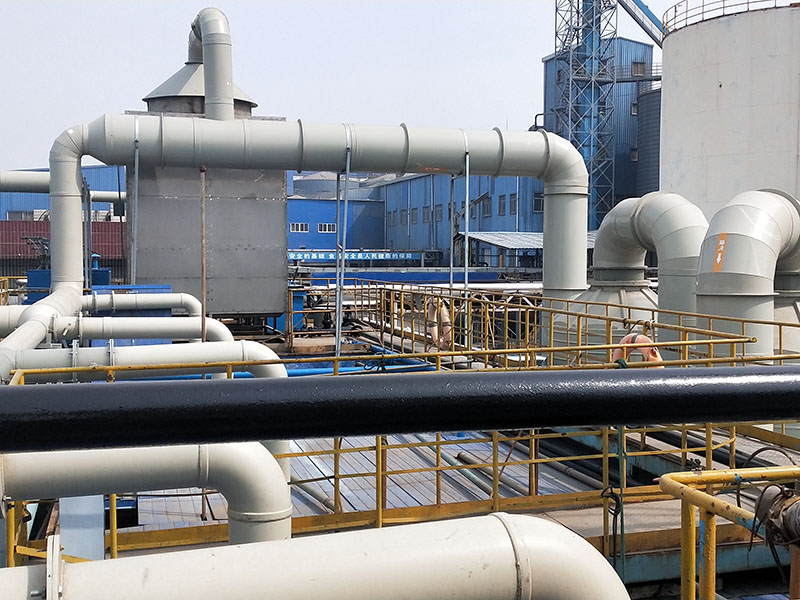 7.噴淋段:在噴淋吸收塔的內(nèi)部安裝的噴淋系統(tǒng),在噴淋管道上安裝了霧化頭,能保證廢氣與循環(huán)液接觸效果。
