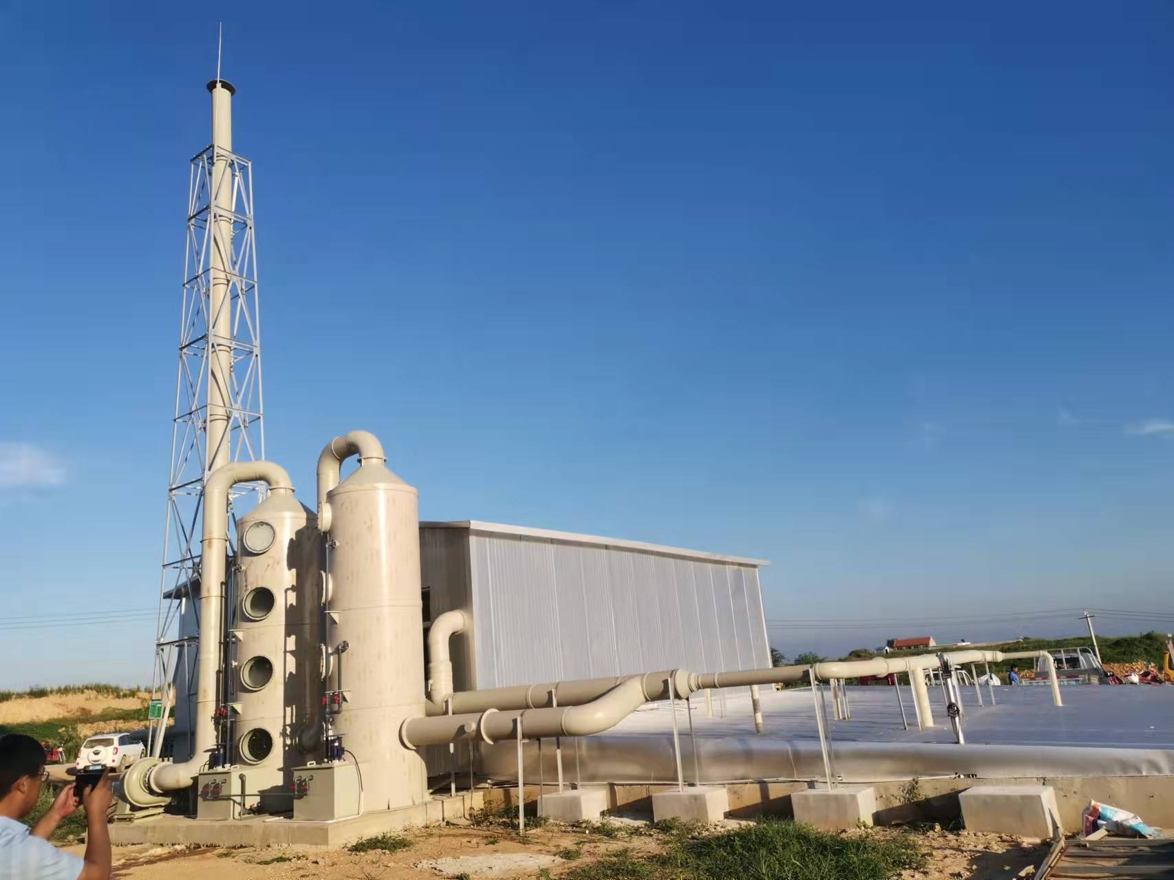 臭氣進(jìn)入處理系統(tǒng)先經(jīng)過(guò)預(yù)洗池進(jìn)行加濕除塵,然后再進(jìn)入生物過(guò)濾池,臭氣通過(guò)濕潤(rùn)、多孔和充滿(mǎn)活性微生物的濾層,利用微生物細(xì)胞對(duì)惡臭物質(zhì)的吸附、吸收和降解功能,微生物的細(xì)胞具有個(gè)體小、表面積大、吸附性強(qiáng)、代謝類(lèi)型多樣的特點(diǎn),將惡臭物質(zhì)吸附后分解成CO2、H2O、H2SO4、HNO3等簡(jiǎn)單無(wú)機(jī)物。有效去除NH3、H2S等惡臭成份,保證設(shè)備出氣口達(dá)標(biāo)排放。