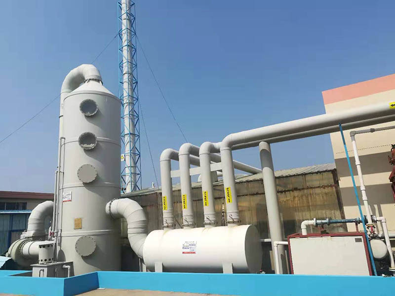 濕法廢氣處理采用酸霧凈化塔進(jìn)行廢氣處理,適于凈化氯化氫氣體(HCl)、氟化氫氣體(HF)、氨氣(NH3)、硫酸霧(H2SO4)、鉻酸霧(CrO3)、氰化氫酸氣體(HCN)、硫化氫氣體(H2S)、低濃度的NOx廢氣等水溶性氣體,具備凈化效果好、結(jié)構(gòu)緊湊、占地面積小、耐腐蝕、抗老化性能好、安裝、運(yùn)輸、維修管理方便、設(shè)備結(jié)構(gòu)較為簡(jiǎn)單、一次性投資少等特點(diǎn),因而廣泛應(yīng)用于對(duì)氣態(tài)污染物的處理。酸霧凈化塔適應(yīng)于高層建筑屋面上安裝,工作原理是酸霧廢氣由風(fēng)機(jī)壓入凈化塔,經(jīng)過(guò)噴霧及填料層,廢氣與氫氧化鈉吸收中和液進(jìn)行氣液兩相充分接觸吸收中和反應(yīng),酸霧廢氣經(jīng)過(guò)凈化后,再經(jīng)脫液層脫液處理,然后排入大氣。凈化后的酸霧廢氣可低于國(guó)家排放標(biāo)準(zhǔn)。